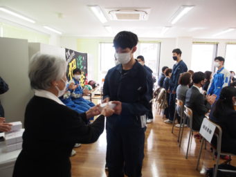 今年度の新入生から、つなぎを作業着へと変更。
