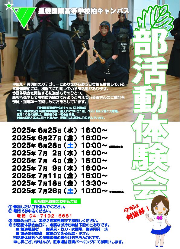 剣道部からのお知らせです。今年度は、部活動体験会を開催いたします。・進学をしても剣道を続けたい・今まで部活に入ったことはなかったけどやってみたい・・・・ダイエットになるかも?・声を出すのが苦手・・・